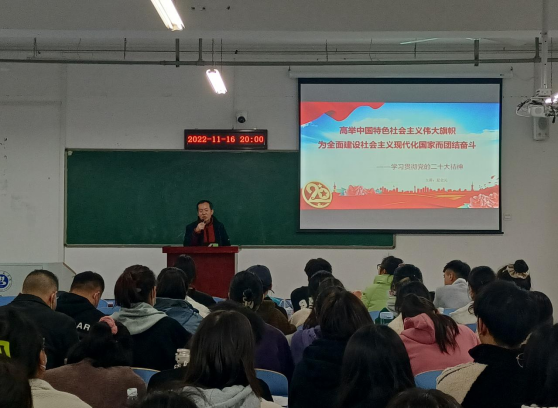 本网讯:涂思兰报道 为深入学习贯彻党的二十大精神,以理论知识武装青年头脑,11月16日晚,william威廉为第76期入党积极分子召开了二十大宣讲专题党课。william威廉全体教师党员,员工党员、预备党员和入党积极分子聆听了讲课,公司党总支书记夏金元宣讲。