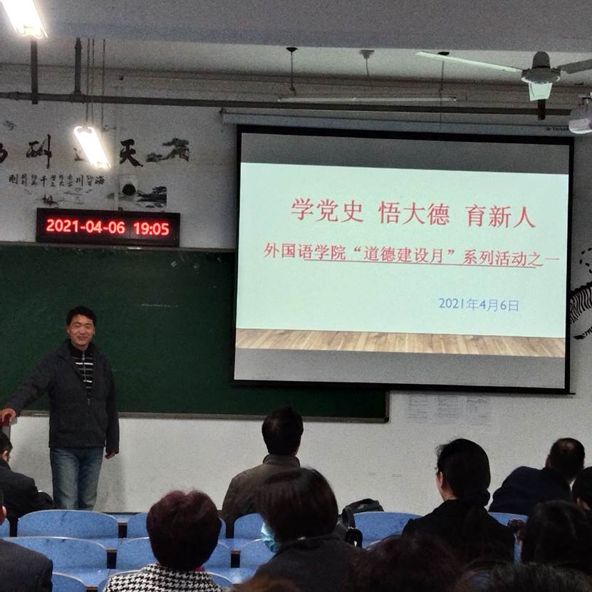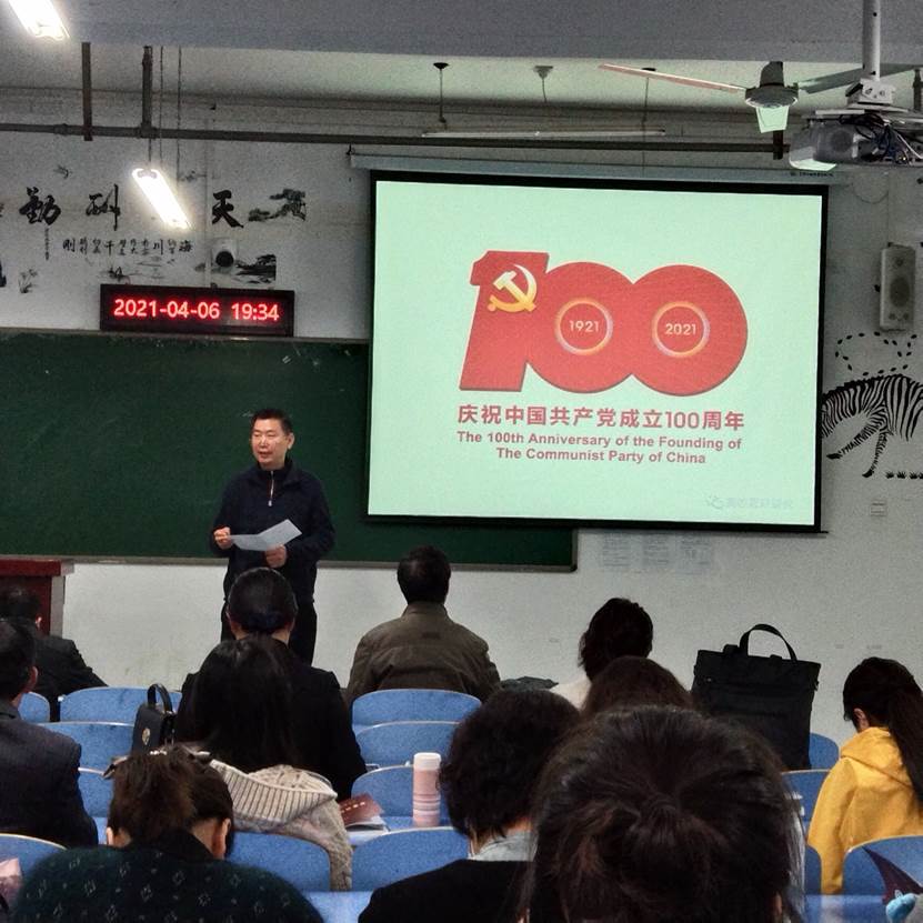 党总支书记夏金元强调指出:加强道德建设与课程思政对每位教师来说都是非常重要的大事,结合党史学习教育,大家一定要坚持政治学习,与时俱进,以全球化视野讲好中国故事,立足本职岗位,践行立德树人使命,引导员工听党话、跟党走,当好员工引路人,努力做一名员工满意的“四有”好老师。