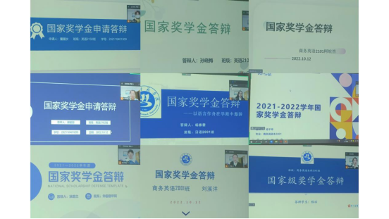 通讯员 姜娟报道:10月12日晚上18:30,2021-2022学年国家奖学金答辩会在启明楼405举行,党总支副书记陈露、学工办主任罗晓忆、团委负责人苌自玉啸、辅导员姜娟、凌爽担任答辩评委。本次国家奖学金评审答辩工作采用线下与线上相结合的形式,全体员工线上观看了答辩,资助委员会负责人姜娟老师主持。