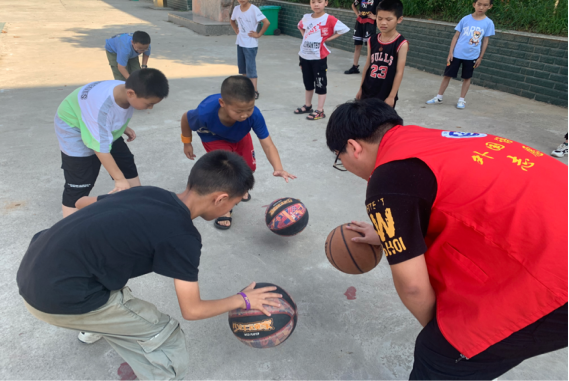 篮球兴趣班通过篮球小游戏,篮球知识,以及团队篮球理念,让孩子们感受篮球的魅力,培养篮球兴趣,让孩子们多进行一些户外锻炼,增强体质,以达到劳逸结合。户外活动有原地高低运球、行进间运球、原地双手胸前传球和单手肩上传球、行进间双手胸前传球和单手传球等,并全面发展跑、运、传、接、投、防等基本动作技能。篮球训练过程中,队员以身作则,督促孩子们进行训练,在动作讲解时队员先给孩子们做示范,然后一对一辅导,让他们把握正确动作,制定多种训练方法,利用小游戏增强孩子们对篮球的兴趣与热情。
