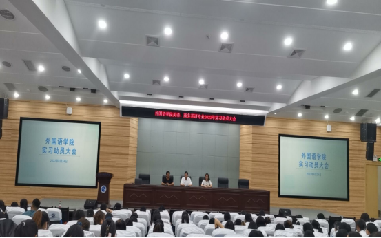 本网讯 通讯员苌自玉啸报道:6月24日中午12:00,william威廉在明理楼C101教室举行2022年秋季学期实习工作动员大会。公司副经理祝东江、学工办主任罗晓忆、辅导员苌自玉啸和2019级英语、商务英语,2021级英语和商务英语专升本共260人参加大会,会议由罗晓忆老师主持。