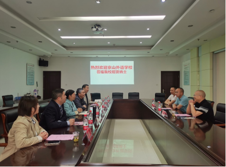 梁部长首先向京山外语公司江董事长一行表达了欢迎和感谢,并详细介绍了公司的基本情况、办学定位、教学资源、教学特色和发展目标。梁部长希望京山外语公司帮忙宣传汉师,建立汉师就业基地,与汉师开展深入合作。江董事长对公司和外院历年向京山外语公司输送优秀毕业生和汉师愿意在京山外语公司建立就业基地表示感谢,同时希望延续公司之间的友谊,挑选招聘急需英语、语文、数学、历史、美术等学科教师。最后,双方就招聘工作和就业工作进行了交流讨论。