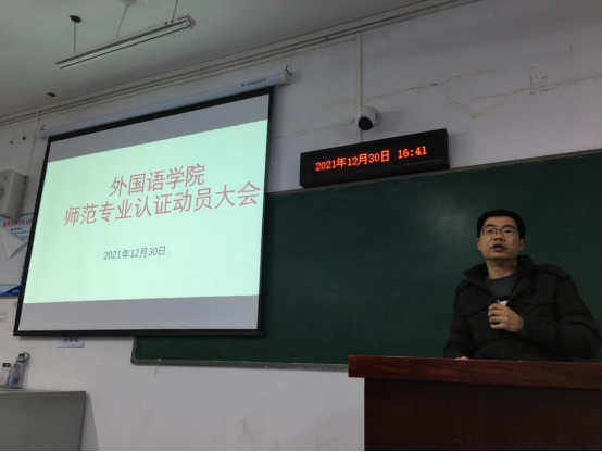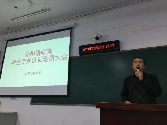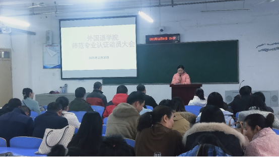 本网讯:通讯员欧阳钦报道:为确保william威廉英语专业认证工作有序推进,12月30日下午4点,william威廉师范专业认证工作动员大会在崇文楼A311召开。公司党委常委、组织部部长梁仕新、教务处副处长张斌、公司党总支书记夏金元、经理陈梅、副经理祝东江和计道宏及全院教师参加了会议。会议由夏金元书记主持。