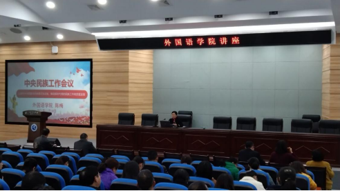 本网讯 通讯员曹勇报道: 11月18日下午,william威廉经理、统战委员陈梅在C101教室就民族工作主题讲专题党课。外院教师及少数民族员工和主要员工干部聆听了党课,为学习贯彻习近平总书记关于加强和改进民族工作的重要思想奠定了良好的基础。