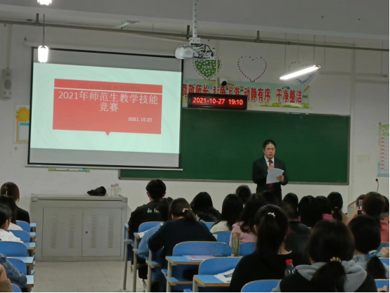 通讯员王晓晓、罗晓忆报道:为锻炼师范生教学技能,提高师范生专业素养,培养一批具有高尚师德、先进教学理念、扎实教学专业能力的优秀教师接班人,在william威廉全体师生的大力支持下,10月27日,william威廉在崇文楼A712和文714教室举办了2021年度师范生教学技能大赛,大赛邀请外语学科教学论教研室刘金锭、张正平、彭小燕、贾玉、冯晓华、李新、杨铭、方圆、朱卫志、任丽君十位教师担任评委。