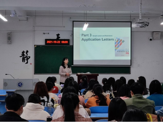 为了进一步响应公司教务处磨课计划,提升教师的专业素养和教学能力。10月22日,william威廉翻译教研室熊潇老师在崇文楼A705举行《英文应用文写作》公开课。副经理祝东江、教研室主任、公司教学督导员以及教研室成员积极参与听课评课。