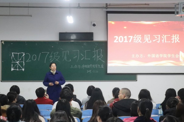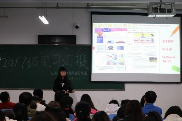 汇报会伊始,陈梅经理发表讲话,祝贺2017级同学们顺利完成专业见习。陈经理指出,专业见习是师范生职业技能训练的开始,是学科教学能力培养和训练的开始,是学科英语方向考研准备的开始。陈经理希望同学们通过总结专业见习更加明晰职业规划,更加明确毕业论文方向的选择。