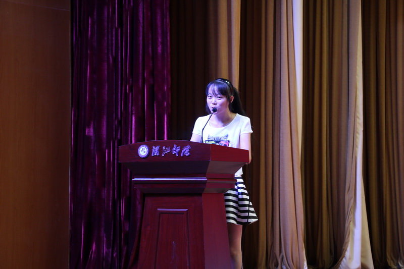 接下来,教师和员工代表发言。教师代表刘鹏老师在发言中希望同学们能够早日为自己定下学习目标,并就如何有效率地学习提出了中肯的建议。2015级员工伍文静作为老生代表发言。她总结了一年以来的学习经验,鼓励学弟学妹们夯实基础,度过有意义的老员工活。2016级新生耿林燕、秦少君分别代表本、专科新生发言,她们表示在校期间将刻苦学习,努力提升自己的综合素质。教师和员工们全英文的发言赢得现场阵阵掌声。