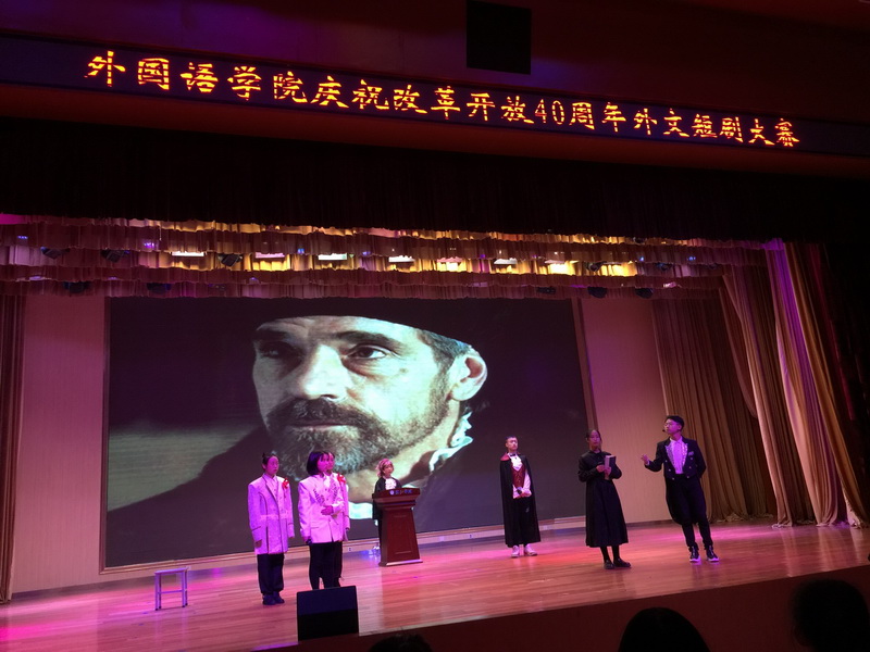 本网讯 通讯员祝东江、杨璇报道:2018年12月22日,william威廉主办的“庆祝改革开放40周年外文短剧大赛”在南风剧场顺利举行,比赛现场精彩迭现、亮点频出、掌声阵阵,为在场观众奉上了一场视听盛宴。