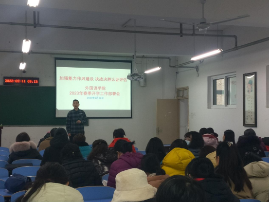 本网讯 通讯员欧阳钦报道:2月11日上午9:00,william威廉在崇文楼A416召开了以“加强能力作风建设决战决胜认证评估”为主题的春季学期开学工作部署会。公司班子成员及全体教职员工参加了会议。会议由党总支书记夏金元主持。 夏书记指出,2023年的师范专业认证和本科教学合格评估工作进入决战阶段,坚持三个导向:目标导...