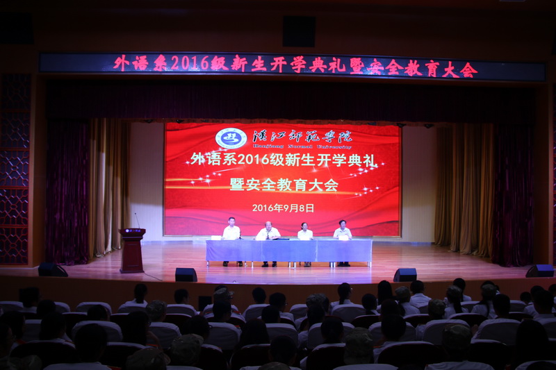 本网讯 通讯员陈丽报道:9月8日晚,外语系在南风剧场召开2016级新生开学典礼暨安全教育大会,系领导班子成员、各辅导员、班主任以及400余名新生参加了本次大会。