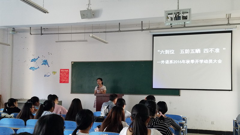 8月31日下午,外语系在文科楼716召开了新学期工作大会,系领导、辅导员及三大组织员工干部、各班班长、副班长和团支书参加了大会。