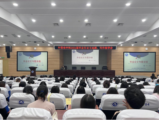讲座前,祝经理发表讲话。他强调,本科生毕业论文是对大学学习成果的综合性总结和听说读写译应用能力的整体检阅,是获取学士学位证的必要条件,全体员工务必端正态度、认真对待、积极思考、提前谋划。祝经理希望2024届毕业生认真聆听余新星老师的讲座,做好笔记并消化吸收,仔细斟酌论文选题、努力搜集并系统研读参考资料、认真进行论文撰写、勇于进行学术创新,实现提升知识储备与运用、提高分析问题和解决问题的能力。